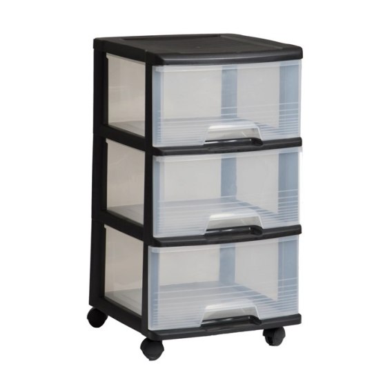 Regał organizer z 3 szufladami w kolorze czarnym o pojemności 20l każda.
