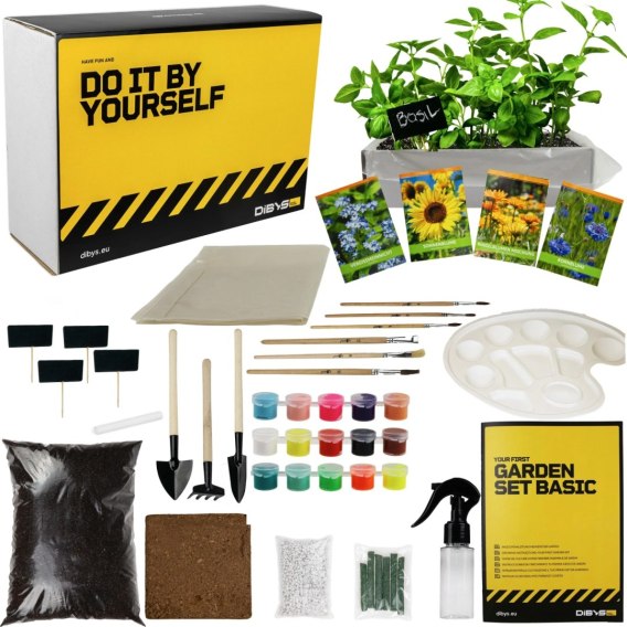 Akcesoria: 4 tabliczki oraz kreda do oznaczania roślin, 3 mini narzędzia ogrodowe (łopatka, szpadel, grabki), spryskiwacz do podlewania - wszystko, czego potrzebujesz do skutecznej pielęgnacji roślin.